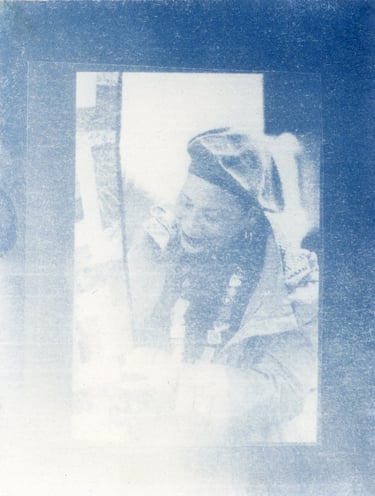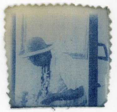 Photographs made using solar activated methods including Cyanotype and Solarfast Dyes on paper and fabric